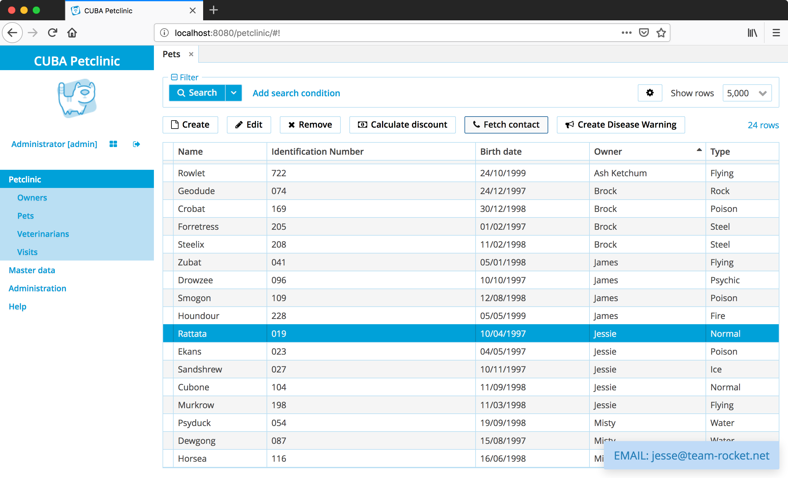 Example: CUBA petclinic