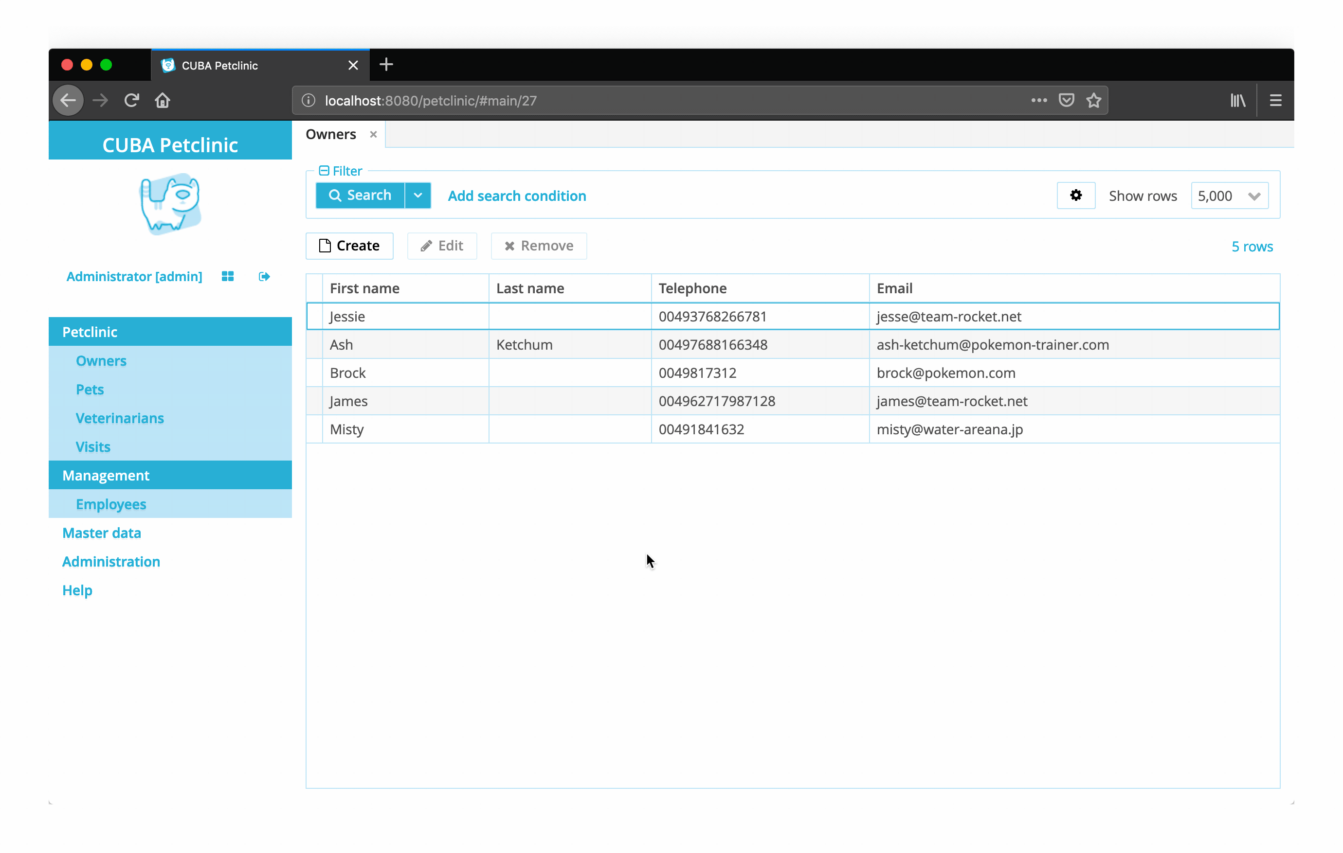 Example: CUBA petclinic